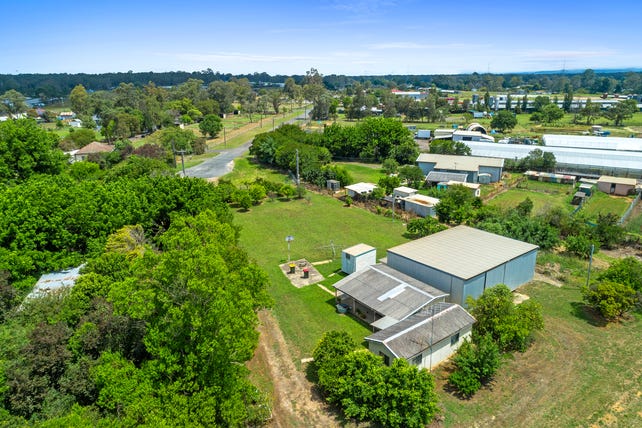 The property features town water connections, South Creek frontage, and ample infrastructure, including a large machinery shed and two smaller sheds for equipment or storage.