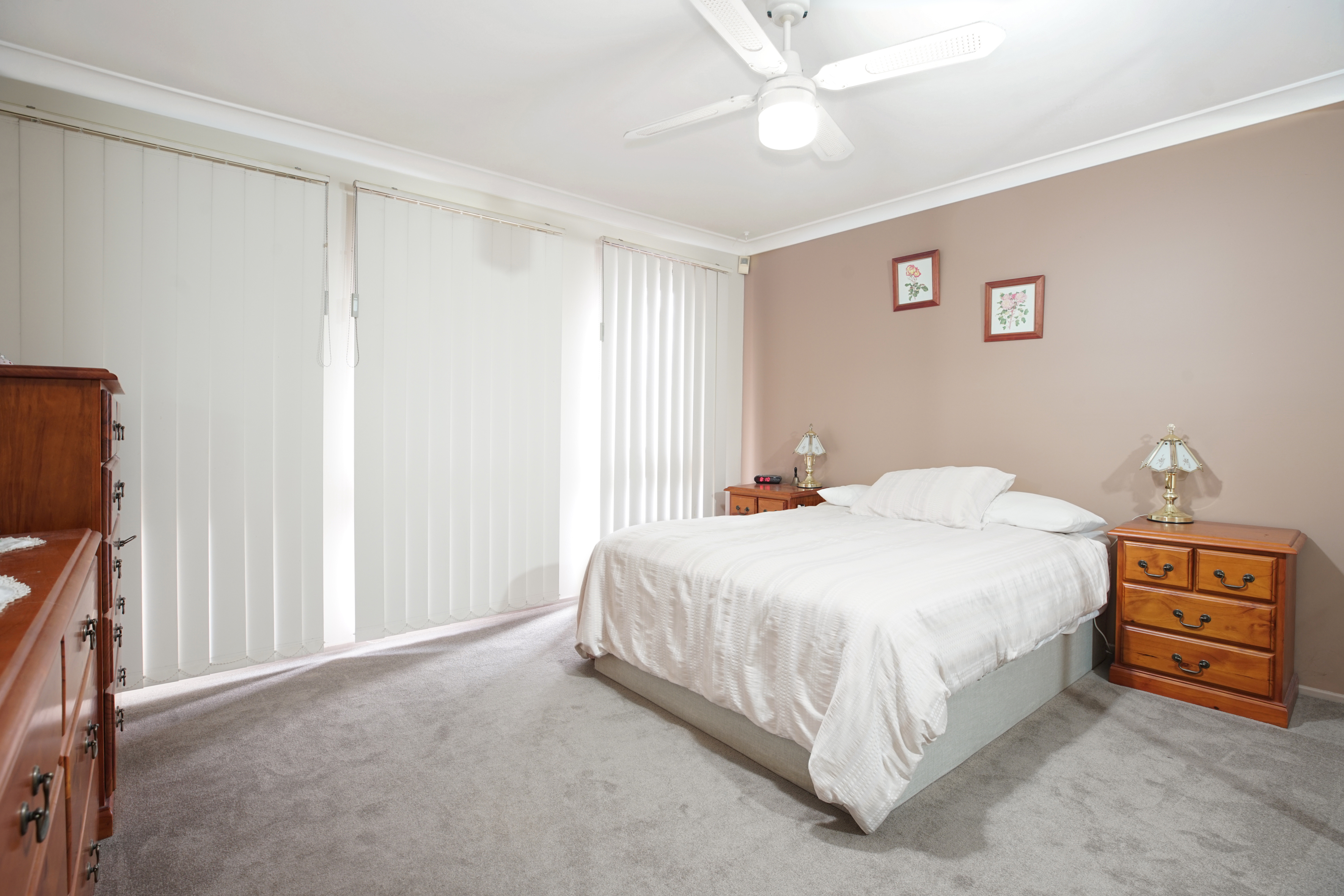 • Additional features include carpet & laminate flooring, ducted air conditioning, vertical drapes, ceiling fan to the main bed, water tank, solar panels & garden shed