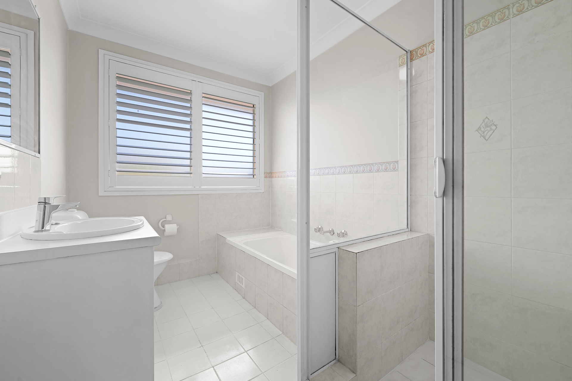 - Well appointed main bathroom to upstairs with plantation shutters, separate bath and shower