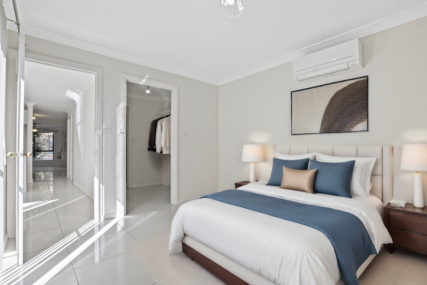 Master Suite: Spacious master bedroom featuring split-system air conditioning to ensure a pleasant temperature year-round, with a walk-in wardrobe and private ensuite.